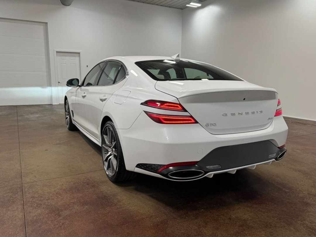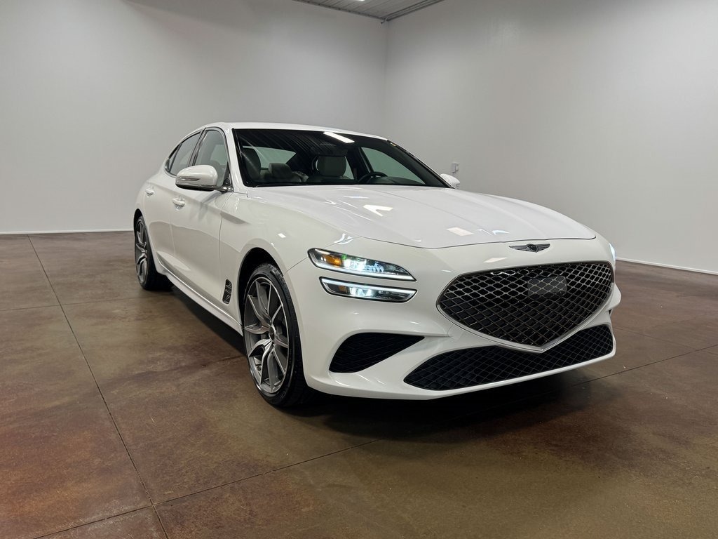 The 2025 Genesis G70 2.5T is a compact luxury sports sedan created for drivers who want an athletic feel wrapped in premium refinement. Its low, sculpted stance and balanced chassis make it far more agile than most sedans in its class. Depending on configuration, it comes in rear-wheel drive or all-wheel drive, with AWD providing enhanced cornering stability and all-weather capability.