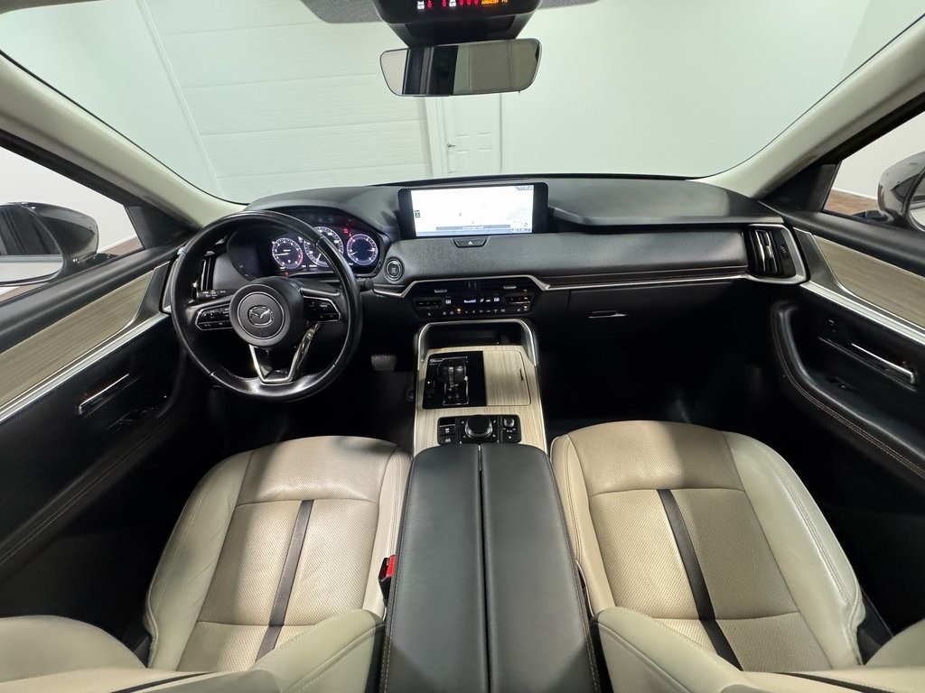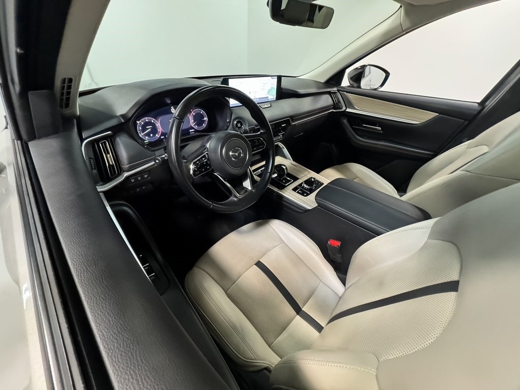 The 2025 Mazda CX-90 3.3 Turbo Premium is a three-row midsize SUV designed with a more upscale approach than previous Mazda models. Its wide stance and rear-biased platform give it a confident road presence, while the cabin emphasizes comfort, craftsmanship, and technology. The all-wheel drive system is standard, helping the CX-90 handle slippery roads and light off-road situations with ease.